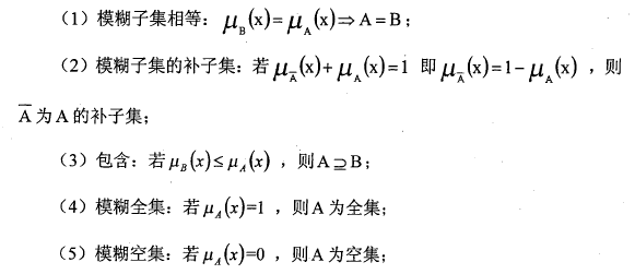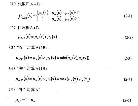 对模糊集合运算时,注意要有同等个数的集合元素参加运算。模糊集合的运算可分为代数运算和逻辑运算,主要有以下几种: