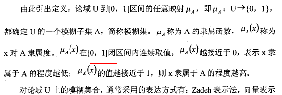 模糊集合只能指出某个个体元素属于集合的程度,而不能像普通集合那样明确指出_这个个体元素是否属于该集合,因此用隶属函数(membershipfimction)来描述[1刀,也称隶属度。
