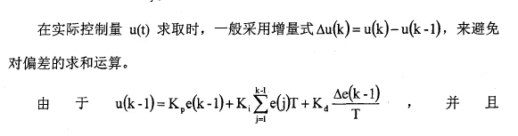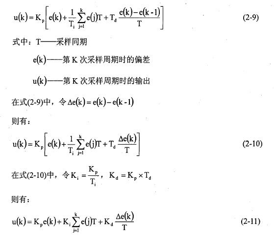 如果控制系统的硬件设计以微处理器为核心,那么该控制系统就是时间离散的控制系统,它以采样频率对输入和输出量进行实时采样,所以PID控制器采用差分方程表示:
