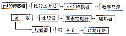 本机由位于箱内的感温元件——pt100温度传感器所感受到的实际温度变换成电信号经放大后控制加热器或制冷压缩机工作,从而达到所需温度