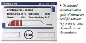 虽然消毒循环不能消除对常规清洁培养箱的需要,但它可以消除对单独高压灭菌内部部件的需要,并消除“驻留”污染的风险。